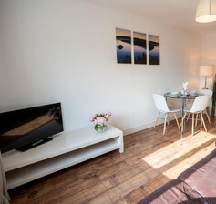 The apartments consist of a large bright bedroom, with double bad and plenty wardrobe space. Spacious bathroom containing bath and shower combination.