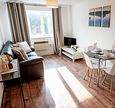 The apartments consist of a large bright bedroom, with double bad and plenty wardrobe space. Spacious bathroom containing bath and shower combination.