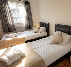 Two separate bedrooms presented with plenty of storage space. The two bedrooms consist within two double beds or one double deb and two twins. Towels and bed linen are provided. Supplied with bathroom essentials. This will be suitable for families with two children. Onside parking is available on request.